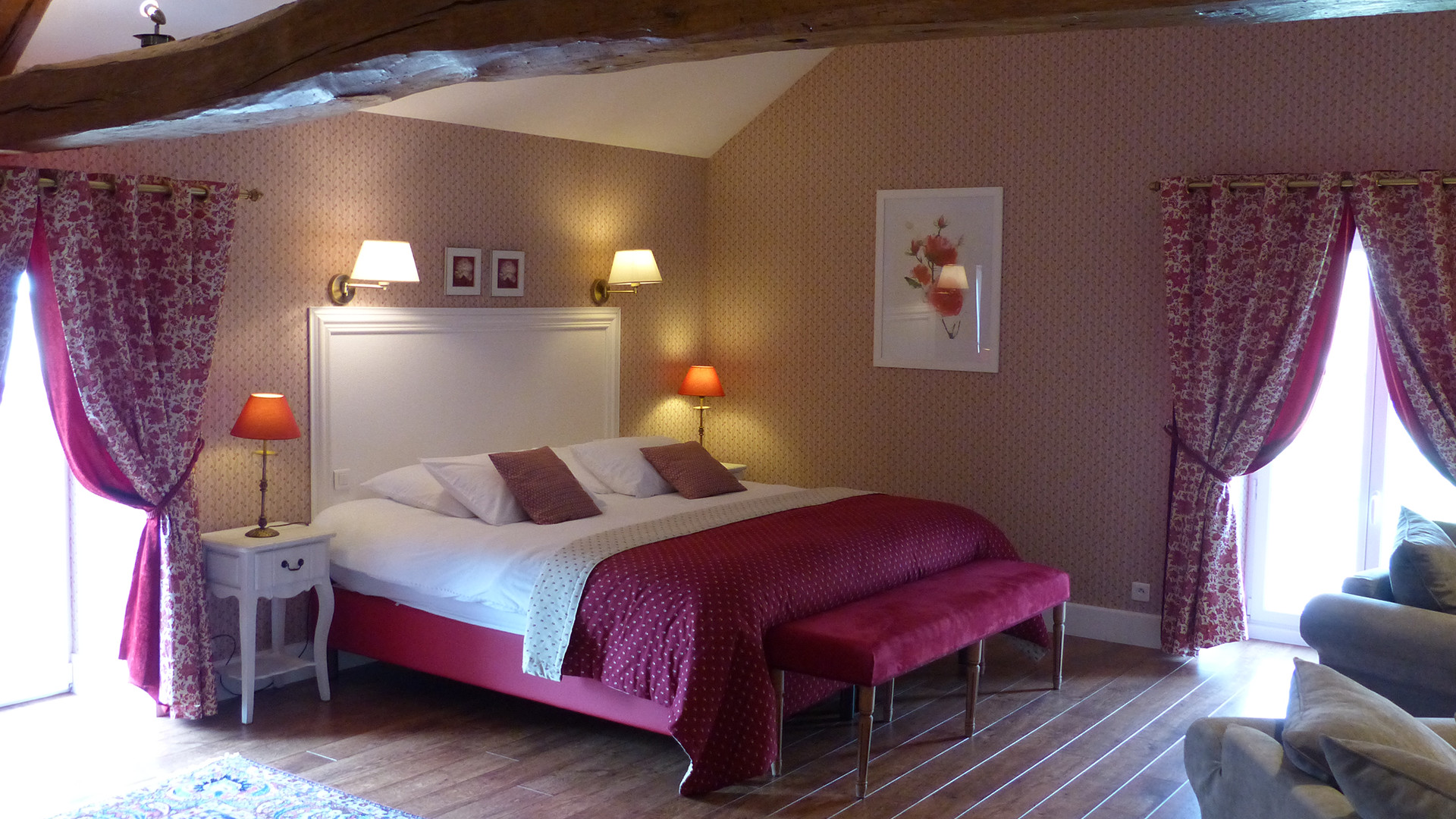 Cette chambre est équipée de toilettes, d’une salle de bain privative, d'une télévision écran plat et d'un accès wifi. (Le petit déjeuner est compris dans nos tarifs).
